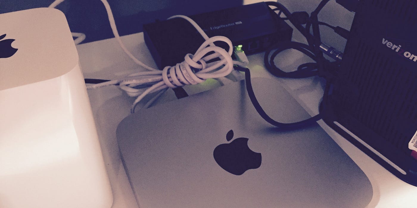 - Network connections: my habitation network has fiber going into my ONT, coax running from the ONT to my Actiontec, ethernet from the Actiontec's LAN1 to my router'due south eth0, then ethernet from my router's eth1 to my wireless admission point (Apple tree Airport Extreme base of operations station). Yous should accept something similar.